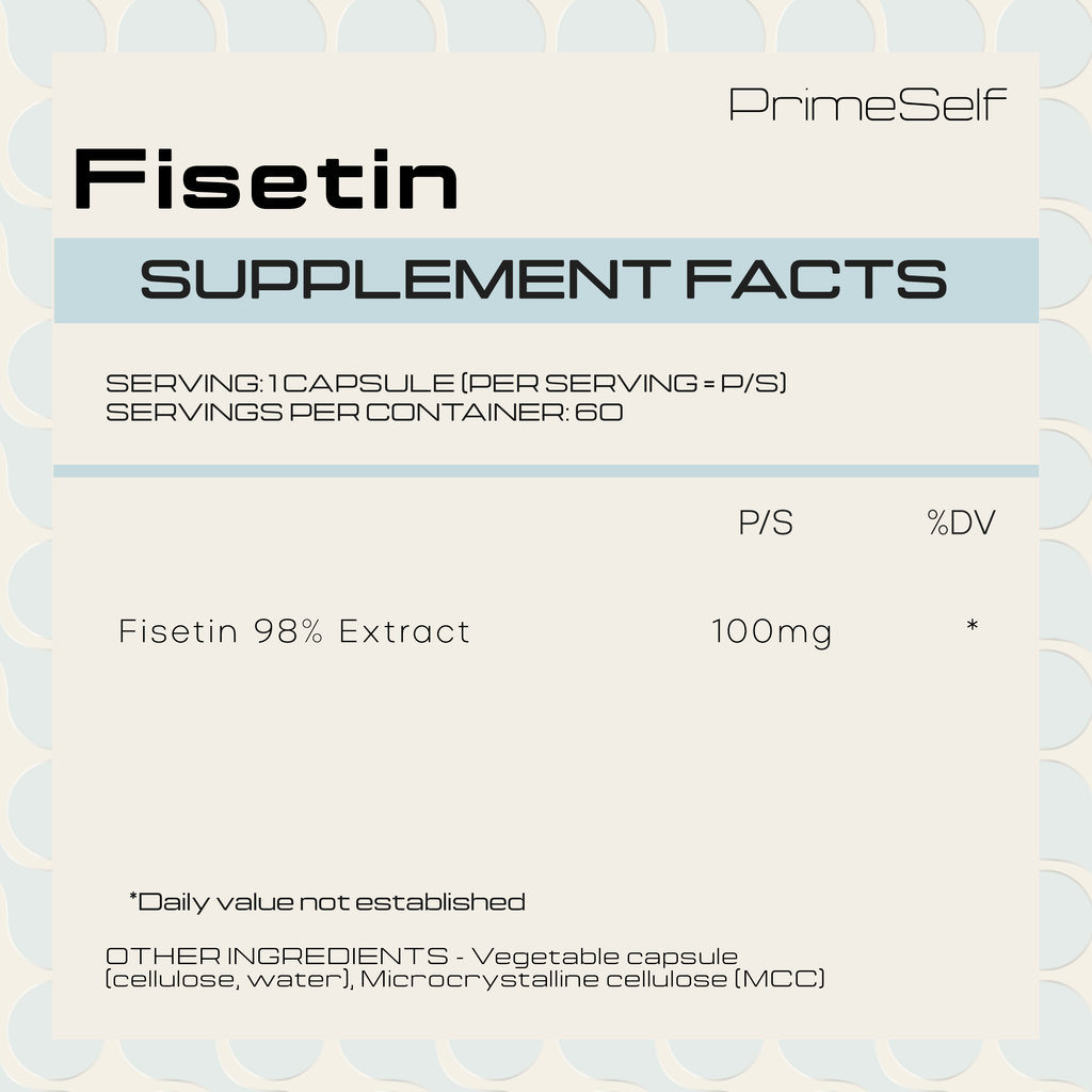 Active Ingredient: Fisetin 98% Extract (100mg)